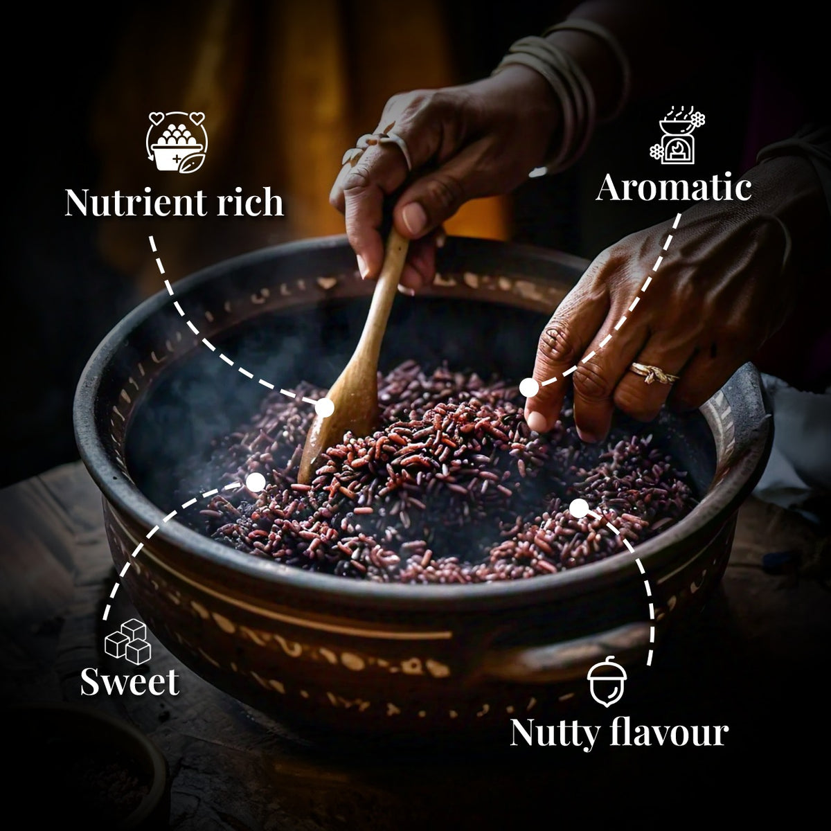 Our black rice, often referred to as ‘forbidden rice,’ is a rare and ancient grain prized for its deep, nutty flavor and luxurious texture. Packed with antioxidants, it carries an aura of heritage and royalty, offering a bold visual and culinary contrast that makes every meal an elegant, nutrient-rich experience.